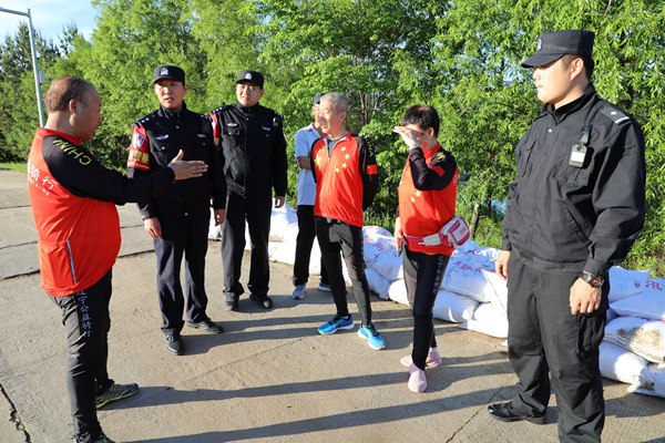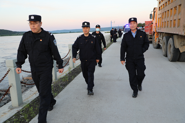 漠河市副市長、公安局黨委書記、局長姜明君,局黨委委員李永鳴、張華武分別帶領(lǐng)各突擊小分隊與北極鎮(zhèn)政府緊密對接,劃分責(zé)任片區(qū),定人定崗巡回查看黑龍江江堤水位、道路排水設(shè)施和人防工程等情況。突擊隊中,科級以上干部、部門負(fù)責(zé)同志近三分之一,黨員民警近五分之二,主動請纓沖在防洪防汛第一線,充分發(fā)揮模范帶頭作用。