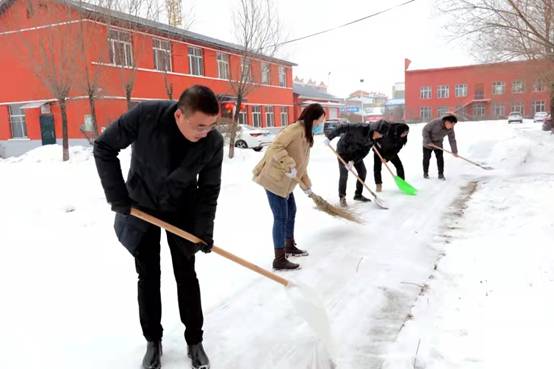 林業(yè)局黨政辦公室組織志愿者分區(qū)分片對林業(yè)局辦公樓前的積雪進行集中清理。黨旗在風雪中迎風飄揚,黨員干部奮力清理著積雪,組成了一幅為民服務、忠誠為民的生動畫面,也進一步展現(xiàn)了機關干部為職工辦實事的責任與擔當。