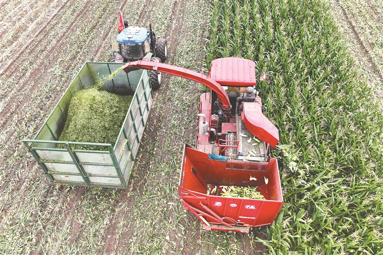 收割現(xiàn)場一派忙碌景象,農(nóng)場調(diào)配的2臺青貯下棒一體收割機(jī)高效作業(yè),實(shí)現(xiàn)莖穗同步收獲,效率較傳統(tǒng)模式提升3倍以上,10輛青貯運(yùn)輸車與4輛糯玉米棒運(yùn)輸車有序配合,日均完成150畝。作業(yè)中,12名黨員主動(dòng)組成“助農(nóng)突擊隊(duì)”,深入田壟撿拾玉米,確保顆粒歸倉。