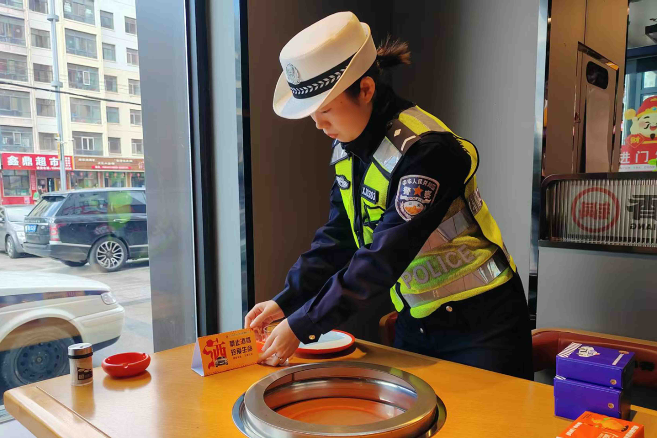 活動中,民警在餐飲場所大堂、前臺、電梯、餐桌等較為明顯的位置張貼海報(bào)、擺放提示桌簽等宣傳品,通過這種直觀、易懂的方式,在潛移默化中引導(dǎo)前來就餐的群眾提升安全出行意識和酒后禁駕意識,自覺摒棄交通違法行為,爭當(dāng)文明交通的參與者、維護(hù)者。同時,采取發(fā)放宣傳資料、以案說法等形式,向餐飲場所負(fù)責(zé)人、服務(wù)員認(rèn)真細(xì)致講解酒后駕駛違法行為的嚴(yán)重危害,發(fā)動涉酒場所從業(yè)人員發(fā)揮安全勸導(dǎo)員作用,及時勸阻、糾正、舉報(bào)酒后駕駛行為,共同筑牢交通安全防線,最大限度地從源頭預(yù)防酒駕醉駕違法行為的發(fā)生。