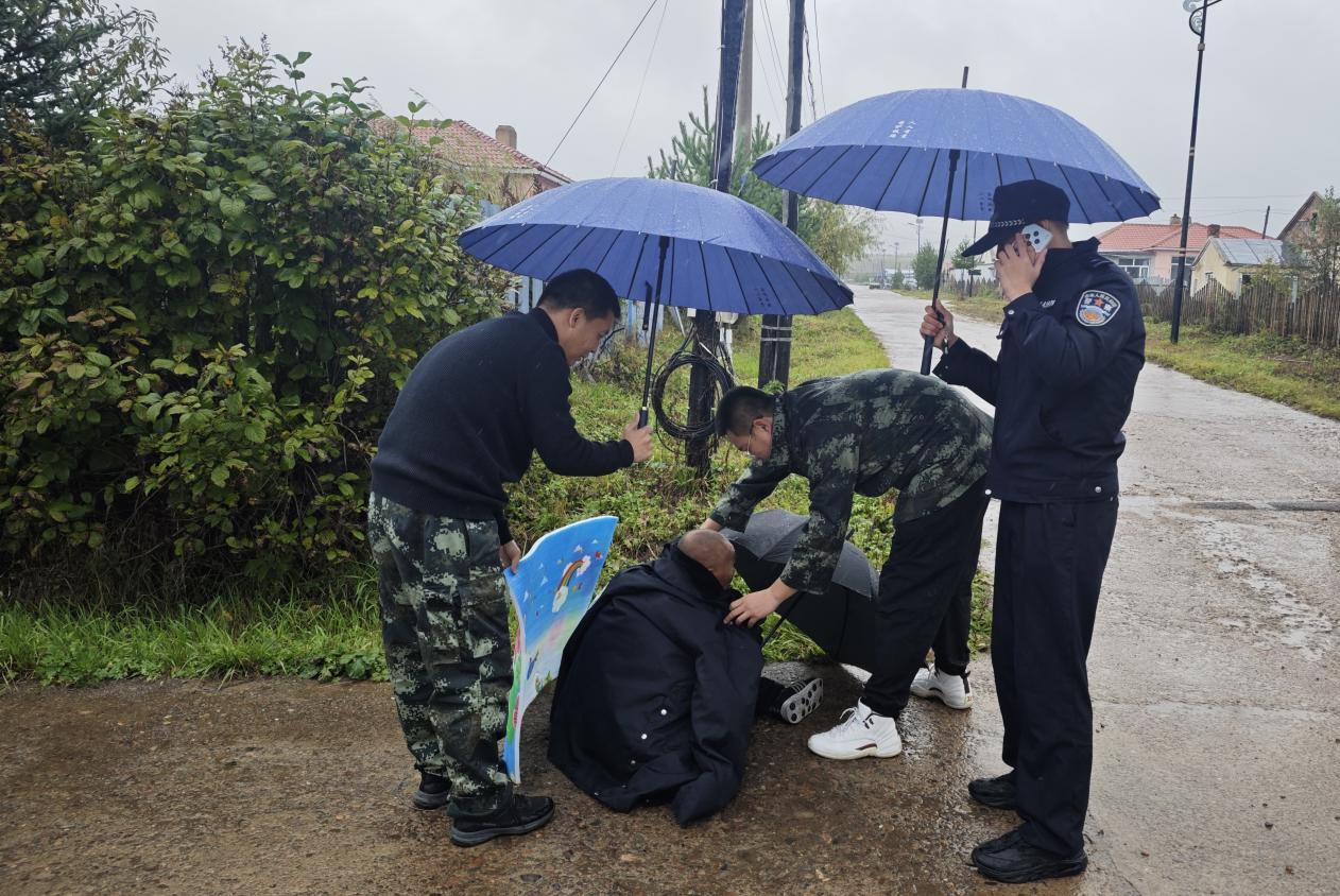到達現(xiàn)場后,民警發(fā)現(xiàn)老人面部有明顯擦傷,腿部無法活動。為避免隨意移動造成二次傷害,民警第一時間找來雨傘和棉襖,一邊撐傘為老人遮擋風(fēng)雨,一邊用棉襖裹住老人身體保暖。同時,民警迅速聯(lián)系老人家屬,并撥打120急救電話,家屬表示希望將老人送往縣里醫(yī)院治療。民警又緊急協(xié)調(diào)縣里的救護車,在等待期間,民警一直撐著傘守護老人,并與老人輕聲交談,耐心安撫老人情緒,緩解其緊張與疼痛。