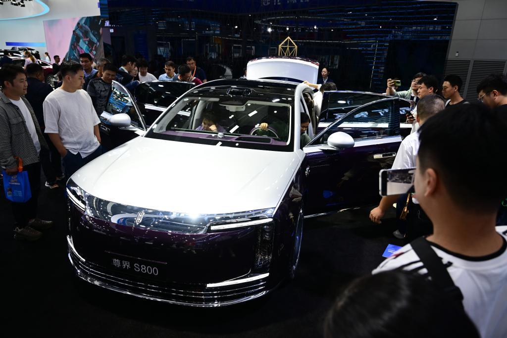 9月20日,觀眾在2025世界制造業(yè)大會(huì)上參觀體驗(yàn)一款新能源汽車(chē)。新華社記者 周牧 攝