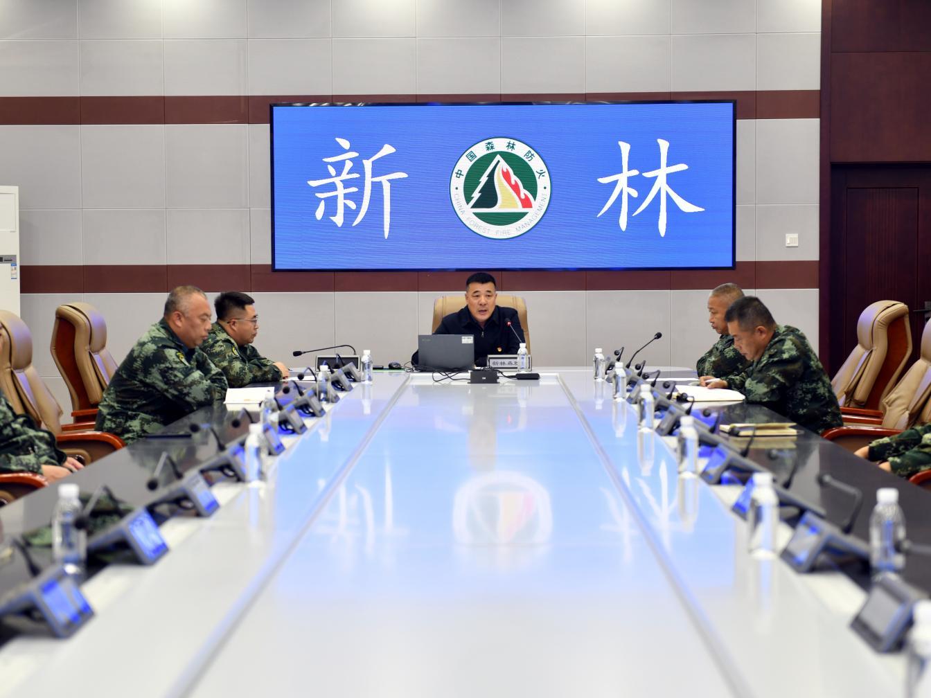 新林林業(yè)局黨委委員、副局長、新防指專職、指揮袁德明在開班式上發(fā)言(蒿夢琪 攝)