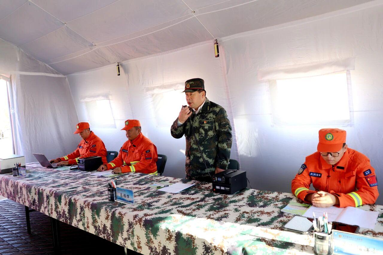 14時(shí)30分許,塔防指總指揮齊毅在指揮席位舉起對(duì)講機(jī)下達(dá)“開(kāi)始”指令,野外實(shí)戰(zhàn)化演練正式啟動(dòng)。14時(shí)31分,492瞭望塔、516瞭望塔瞭望員先后發(fā)現(xiàn)塔林林場(chǎng)3支線83林班出現(xiàn)白色煙柱,立即上報(bào)火情。接到報(bào)告后,基地指揮中心調(diào)度員快速圖上作業(yè)鎖定火場(chǎng)位置;塔防指專職指揮聞?dòng)庐?dāng)即啟動(dòng)應(yīng)急預(yù)案,指令多支隊(duì)伍緊急集結(jié),塔林、繡峰、瓦拉干三個(gè)林場(chǎng)各派出25人森防專業(yè)隊(duì)先行出發(fā),局屬森防專業(yè)隊(duì)135人攜全地形運(yùn)兵車(chē)、消防水罐車(chē)等裝備跟進(jìn),索滑降中隊(duì)15人同步趕赴塔航站。