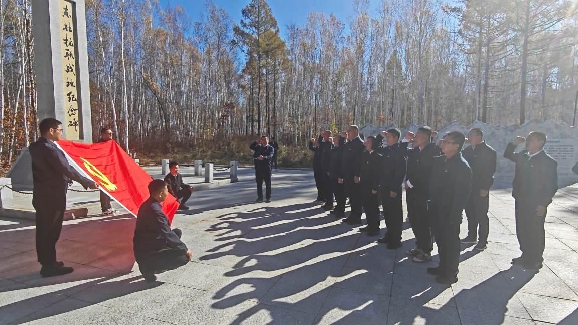 默哀結(jié)束后,重溫入黨誓詞環(huán)節(jié)將活動(dòng)推向高潮。在領(lǐng)誓人的帶領(lǐng)下,全體黨員面向鮮紅的黨旗,舉起右拳,莊嚴(yán)宣讀入黨誓詞。鏗鏘有力的誓言回蕩在紀(jì)念碑前,不僅是對入黨初心的重溫,更是對使命擔(dān)當(dāng)?shù)脑俅纬兄Z,進(jìn)一步強(qiáng)化了黨員的身份意識(shí)與責(zé)任意識(shí)。