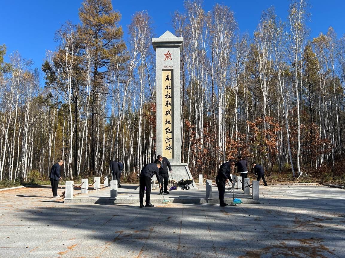 9時(shí)40分,全體參與人員乘車前往革命烈士紀(jì)念碑墓地,開啟致敬英烈活動(dòng)?;顒?dòng)現(xiàn)場,全體人員手持清掃工具,認(rèn)真清理紀(jì)念碑周圍的落葉與雜草,以實(shí)際行動(dòng)表達(dá)對革命先烈的緬懷與敬意。