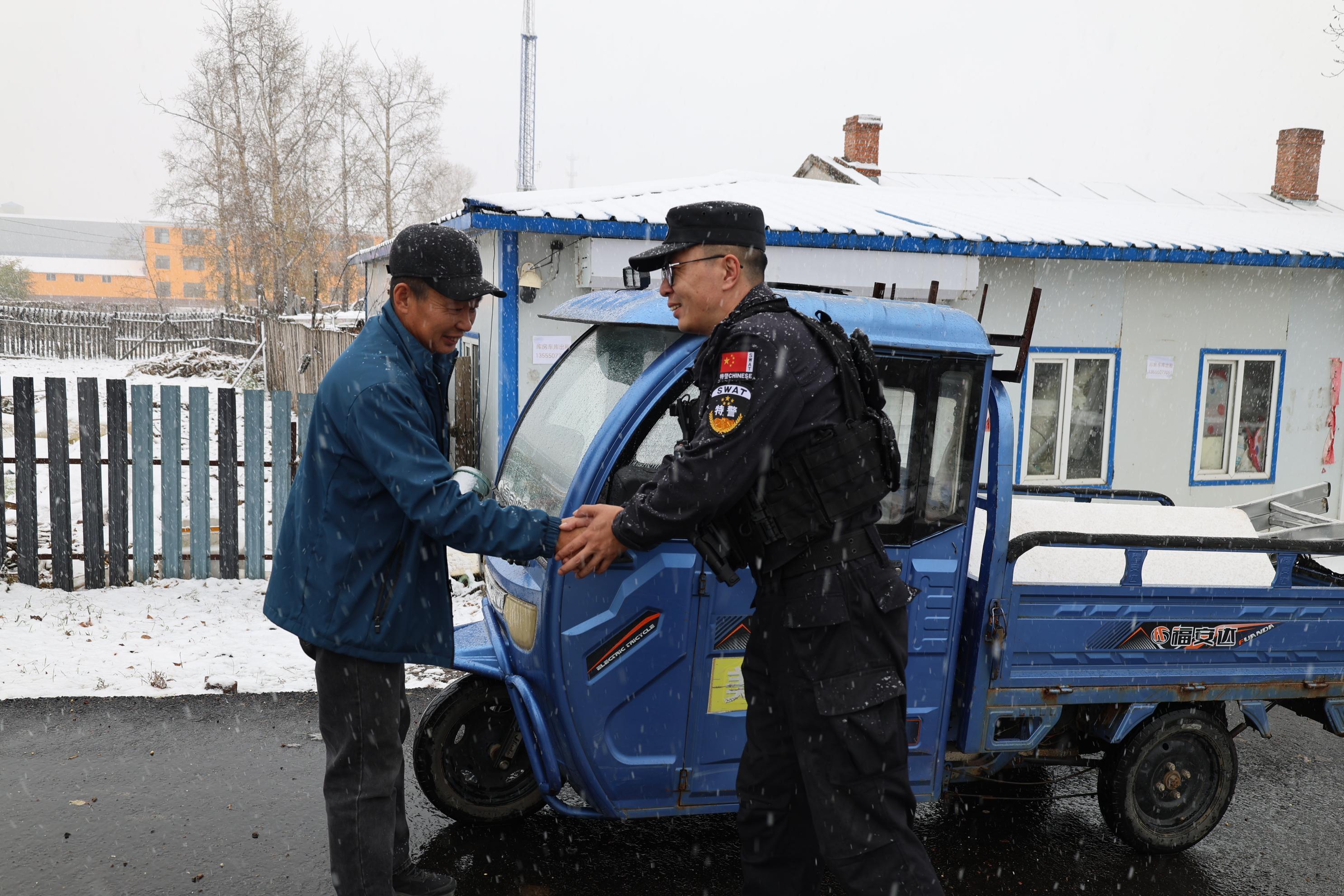 “太感謝你們了!這雪天要是沒人幫,真不知道該咋辦?!避囍骶o緊握住民輔警的手連聲道謝。巡邏民輔警還細心提醒其檢查車輛狀況,告知雪天行車注意事項,隨后繼續(xù)投身巡邏任務(wù)。