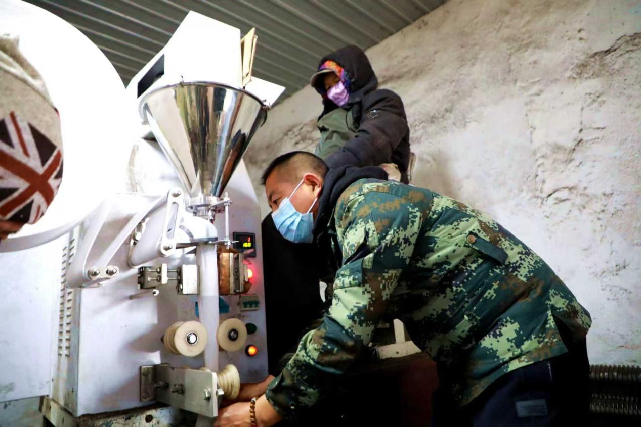 阿木爾林業(yè)局中心苗圃技術(shù)人員正在維修生產(chǎn)輕基質(zhì)容器杯設(shè)備(王力 攝)