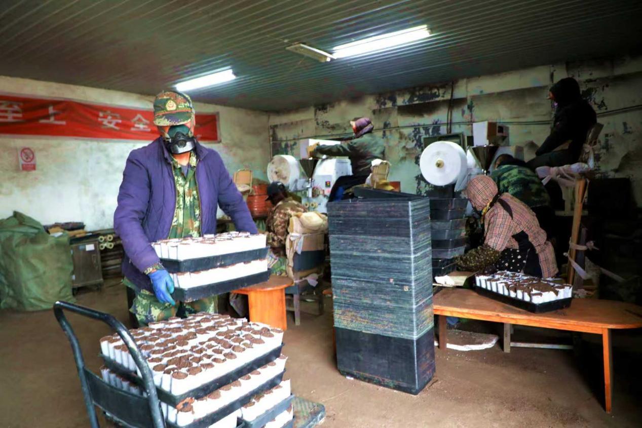 阿木爾林業(yè)局中心苗圃加班加點(diǎn)生產(chǎn)輕基質(zhì)容器杯(王力 攝)