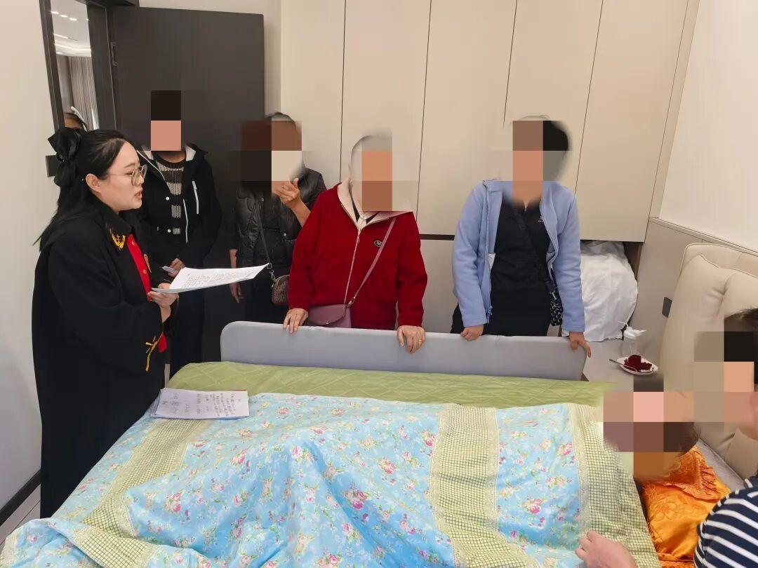 開庭當天,干警們一進老人家門,就忙著搭建“臨時法庭”;法官沒有用急促的問話推進流程,反而把語速放慢了兩倍,拉著老人的手耐心傾聽——這份“把當事人當家人”的細致,漸漸融化了老兩口心中的芥蒂,讓他們愿意敞開心扉溝通。調(diào)解結(jié)束后,法官特意蹲在張爺爺?shù)牟〈策叾冢骸昂罄m(xù)的法律文書我們會直接送過來,您和阿姨要是有任何疑問,隨時給我們打電話,不用來回跑法院?!甭牭竭@話,張爺爺看著干警們收拾東西的背影,渾濁的眼睛里忽然泛起了微光,他輕輕吐出兩個字:“謝謝”。這簡單的兩個字,藏著老人及家人對“司法不缺位”的深深感激,更映出了人民群眾對“司法為民”的熱切期盼。