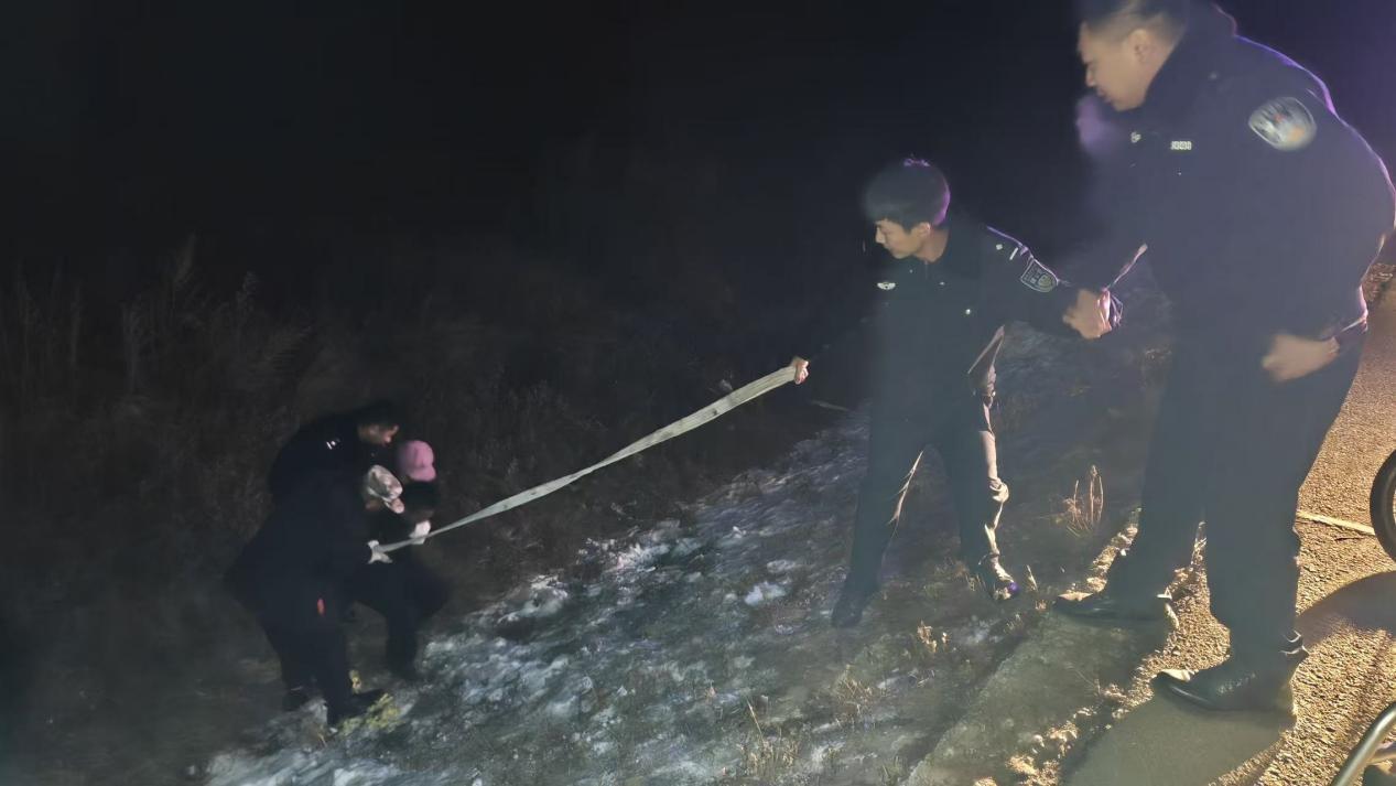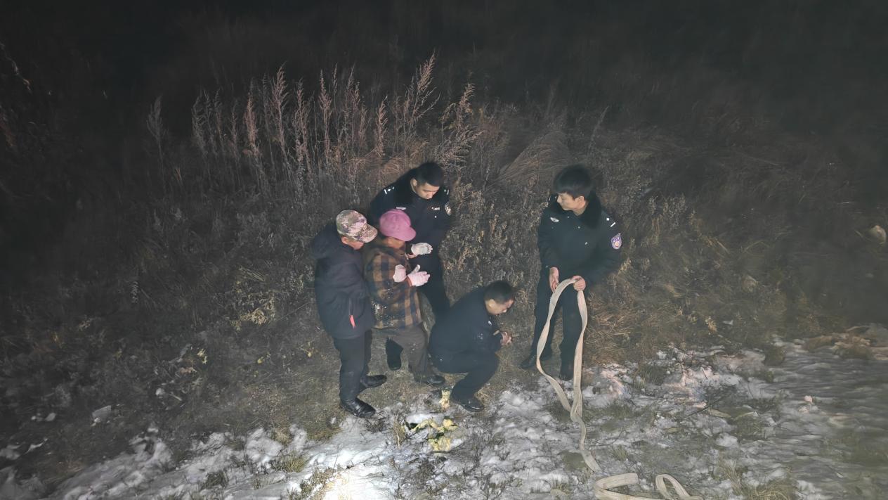據(jù)了解,當時呼瑪縣公安局興華派出所民輔警正對轄區(qū)開展常態(tài)化巡查,發(fā)現(xiàn)一位群眾在路邊攔住警車,民輔警立即停車查看情況。詢問得知,該群眾的妻子乘坐電動輪椅時由于天黑路滑不慎駛進了深溝,因其妻子年過六旬身體殘疾且行動不便,墜入深溝摔倒后無法起身,恰好此時看到巡邏的警車,便立刻攔車尋求幫助。