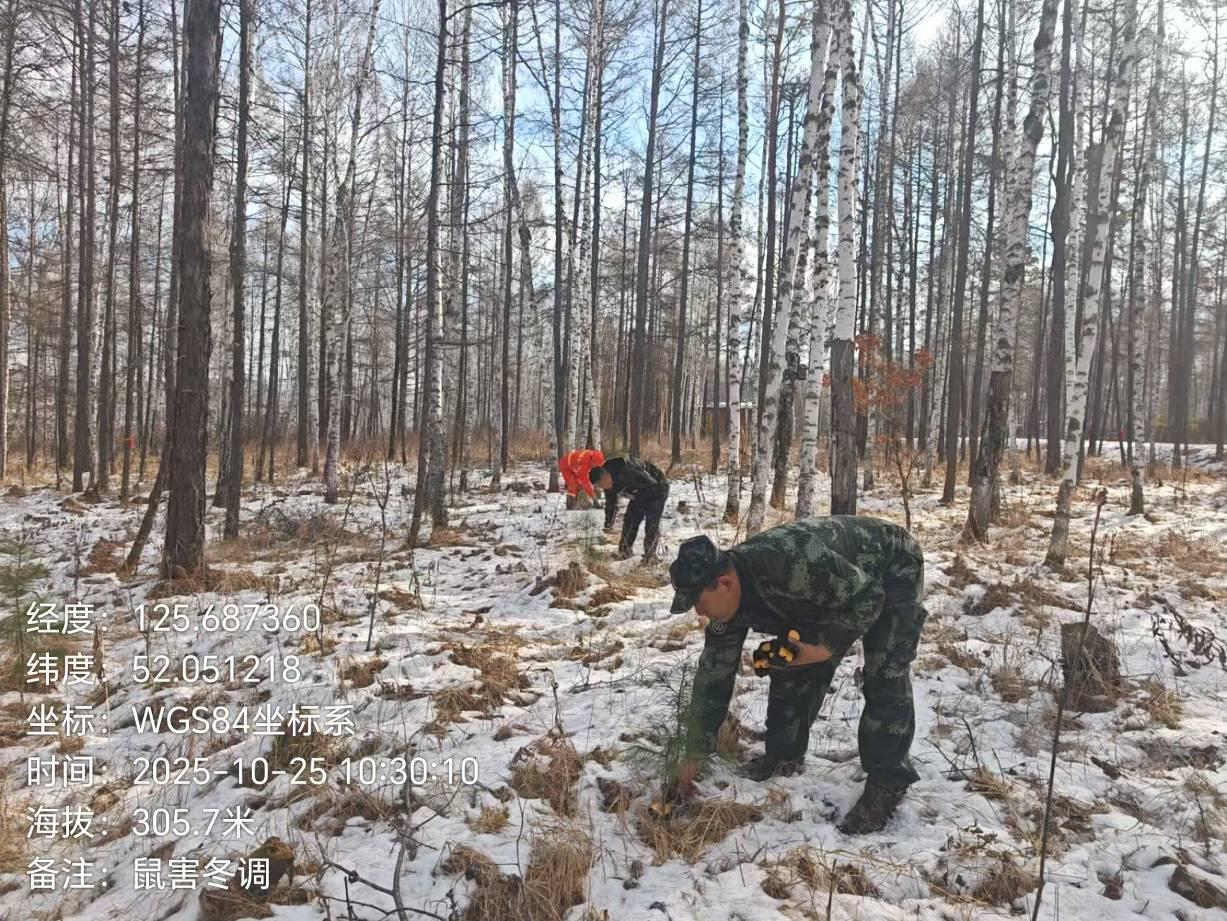 調(diào)查過(guò)程中,工作人員不畏山高路遠(yuǎn)和嚴(yán)寒天氣,堅(jiān)持深入偏遠(yuǎn)林區(qū)和復(fù)雜地形,確保調(diào)查數(shù)據(jù)真實(shí)可靠。初步調(diào)查結(jié)果顯示,部分區(qū)域鼠害越冬存活率較高,局部林分存在潛在危害風(fēng)險(xiǎn)。