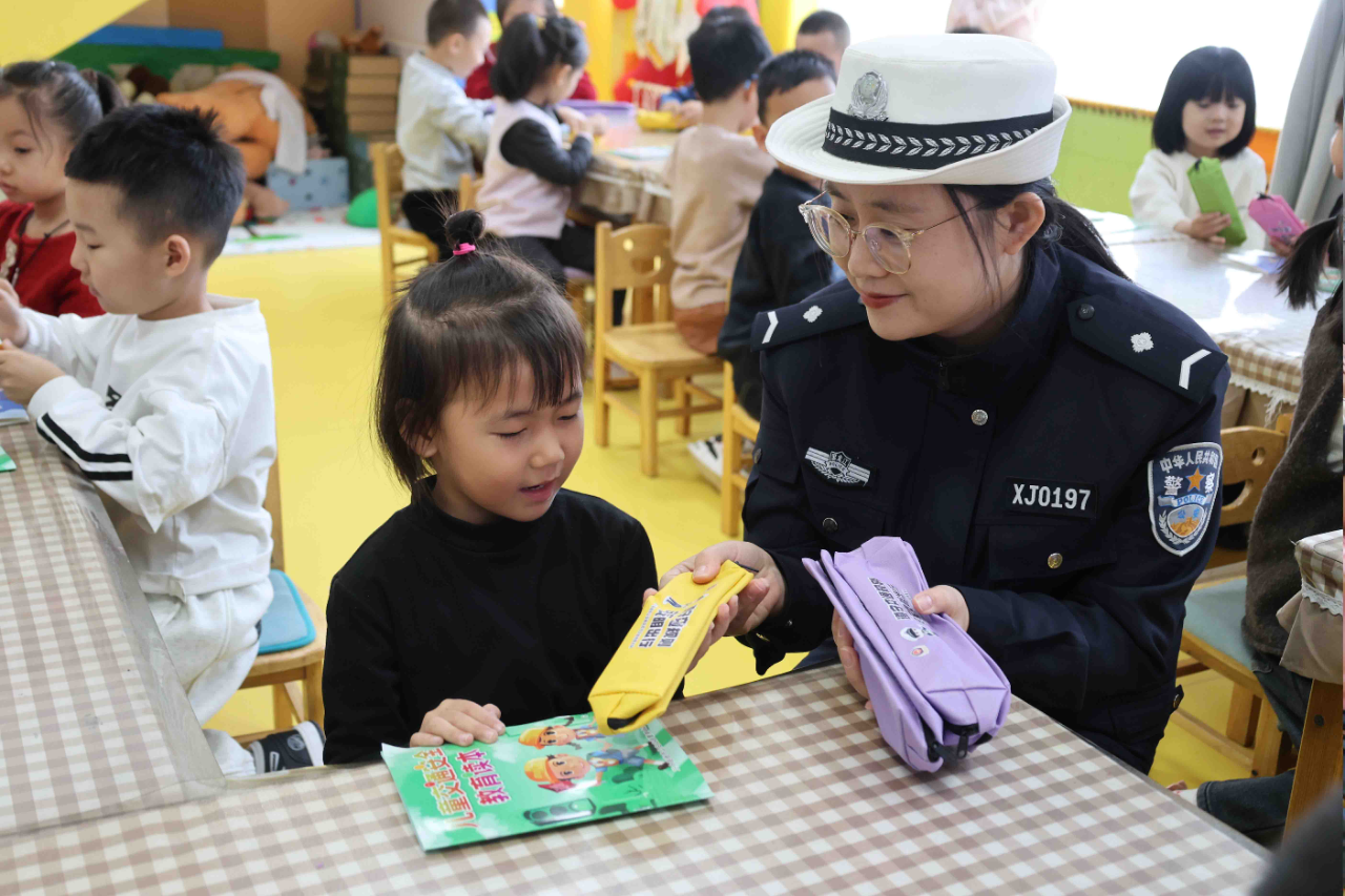 活動中,民警結(jié)合幼兒認(rèn)知特點(diǎn),將枯燥的交通法規(guī)轉(zhuǎn)化為生動有趣的互動形式,通過發(fā)放安全宣傳圖冊、粘貼海報、播放交通安全卡通動畫等寓教于樂的形式,用通俗易懂的語言向孩子們普及信號燈通行規(guī)則、過馬路走斑馬線及冬季出行安全知識和注意事項,進(jìn)一步提升師生的安全出行意識和守法意識。同時,持續(xù)強(qiáng)化“小手拉大手”示范引領(lǐng)作用,積極鼓勵孩子們當(dāng)起家庭“交通安全監(jiān)督員”,將活動中學(xué)到的交通安全知識傳遞給父母,提醒家長冬季出行要做到不酒駕、不超速、乘車系好安全帶等出行注意事項,時刻督促家人養(yǎng)成良好出行習(xí)慣。