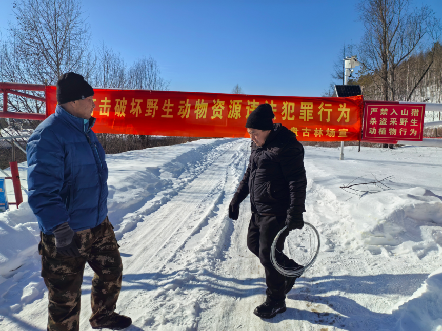 針對冬季盜獵高發(fā)特點(diǎn),林場組織資源管護(hù)人員重點(diǎn)對施業(yè)區(qū)內(nèi)野生動(dòng)物活躍區(qū)、林緣地帶、溝系河道等易安放捕獵具區(qū)域進(jìn)行反復(fù)排查。工作人員憑借豐富經(jīng)驗(yàn)與敏銳觀察力,細(xì)致搜尋并清理雪下、灌木叢中隱匿的獵夾、獵套、粘網(wǎng)等非法器具,從源頭消除安全隱患,堅(jiān)決遏制亂捕濫獵違法行為。