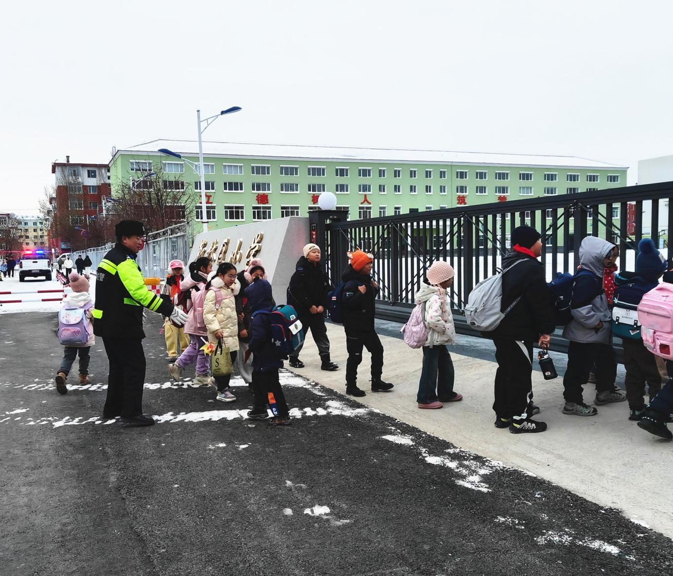 自“護學崗”機制常態(tài)化運行以來,新林區(qū)公安局始終將校園安全置于民生工作的重要位置,聚焦“上學、放學”兩個關(guān)鍵時段,圍繞“校門口、周邊路、重點段”三個核心區(qū)域,制定“一校一策”護學方案?!靶∨笥眩c走,注意看車!”在學校門口,交警正牽著學生的手,將他們安全帶過馬路。一方面疏導校門口交通,引導接送車輛有序停放、即停即走,避免擁堵;另一方面加強校園周邊巡邏防控,排查安全隱患,護送學生安全過馬路、進出校園,用腳步丈量平安距離。