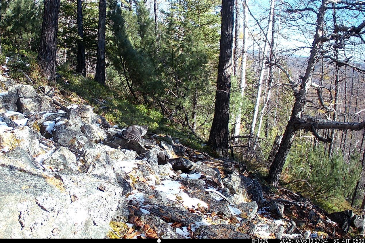 項目實施中,工作人員克服地形復雜、嚴寒天氣等挑戰(zhàn),深入森林公園腹地完成15條冬季樣線調(diào)查,并同步開展97臺紅外相機的維護與回收工作,累計獲取了大量珍貴野生動物影像資料及活動數(shù)據(jù)。監(jiān)測范圍內(nèi),駝鹿、原麝、貂熊、紫貂、猞猁、棕熊、馬鹿、花尾榛雞等國家重點保護野生動物相繼現(xiàn)身,更捕捉到原麝覓食、棕熊帶崽等罕見畫面,直觀印證了森林公園內(nèi)棲息地質(zhì)量優(yōu)良、生態(tài)保護成效顯著。