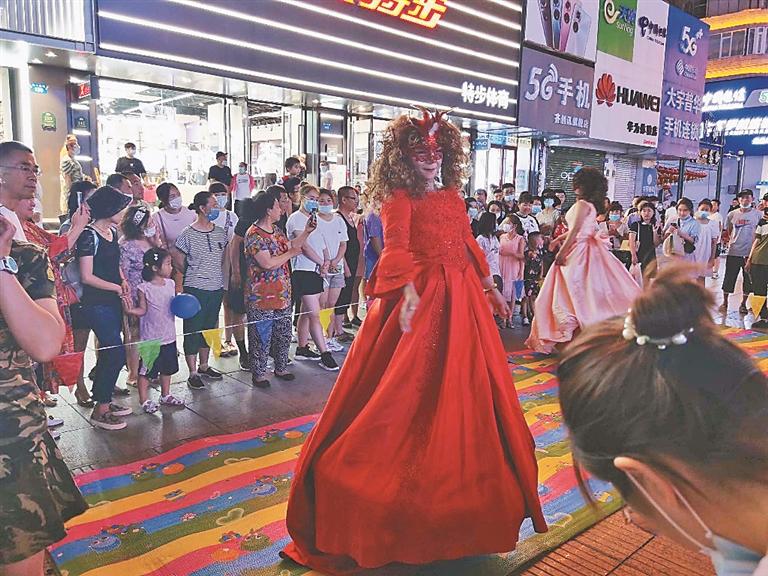 圖為市民觀看俄羅斯風(fēng)情表演。