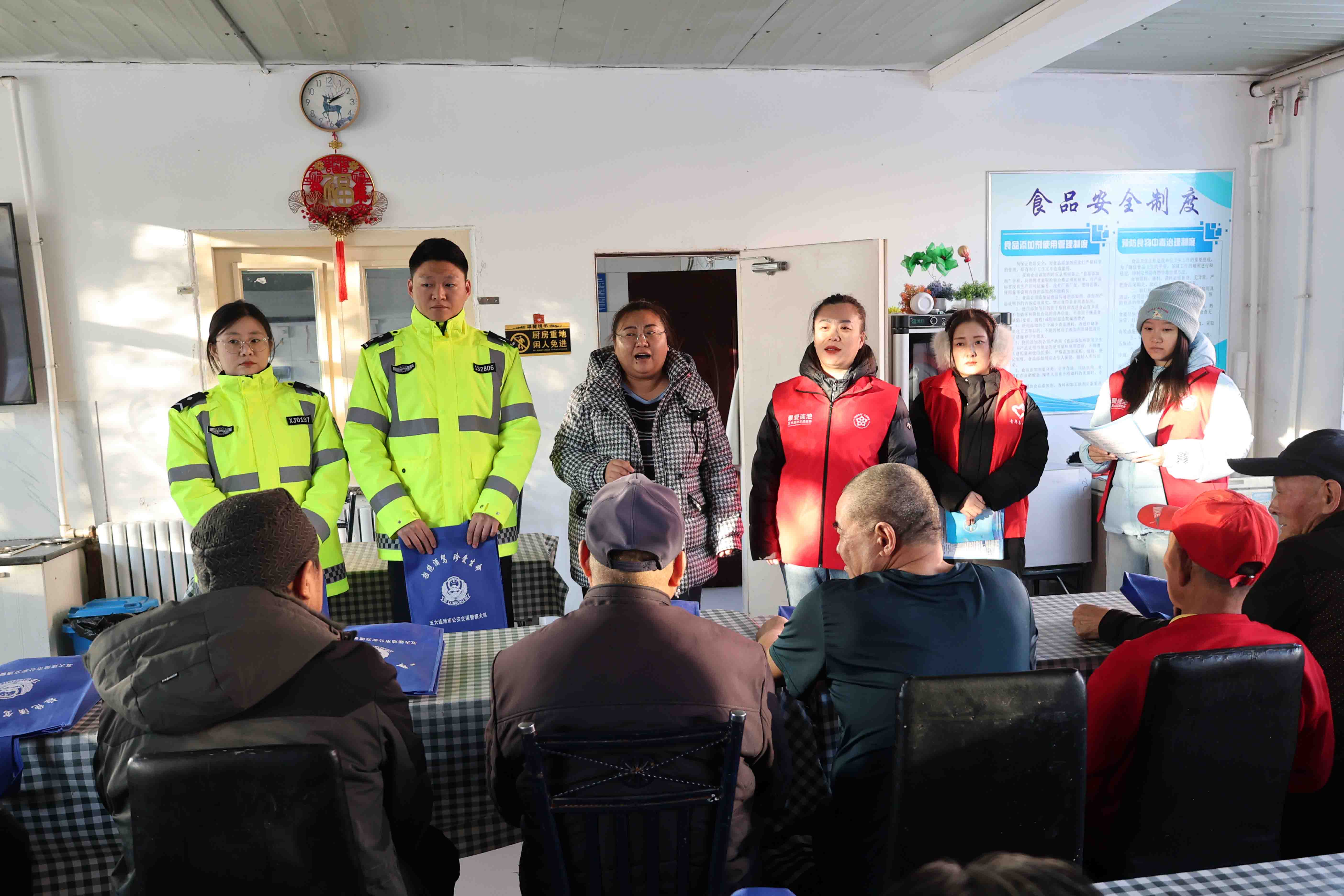 活動中,民警結合老年人行動遲緩、辨識能力較弱及冬季冰雪路面濕滑、能見度低的特點,用通俗易懂的語言細致講解冬季路面結冰出行安全注意事項及應對技巧,并耐心細致地向老人們講解出行過程中乘坐非法營運車輛、酒駕醉駕、無證駕駛、騎行電動車不戴安全頭盔、駕乘車輛不系安全帶等各類交通違法行為的危害性,提醒和引導老年人群體在日常出行時要自覺摒棄交通陋習,克服麻痹僥幸心理,做到安全文明出行。