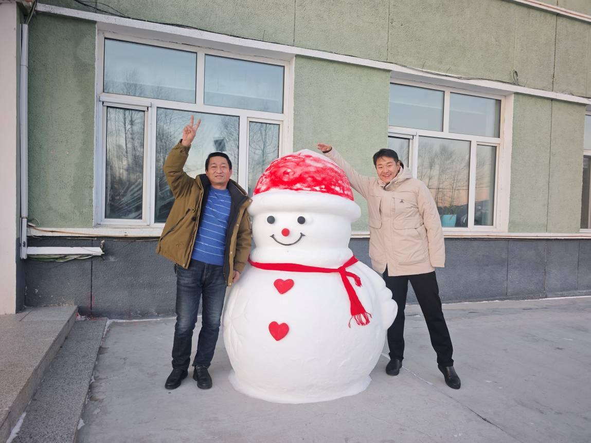 林場職工正在堆雪人(李輝 攝)