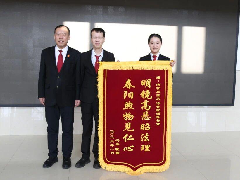 黑龍江經(jīng)濟(jì)網(wǎng)訊(董慧瑩 張智雪)1月15日,青岡縣人民法院王國(guó)慶法官收到當(dāng)事人贈(zèng)予的錦旗,“明鏡高懸昭法理 春陽(yáng)煦物見仁心”十六個(gè)金字熠熠生輝,既是當(dāng)事人對(duì)案件審理的由衷認(rèn)可,更是對(duì)法院司法工作的高度贊譽(yù),為冬日里的法院增添暖意。