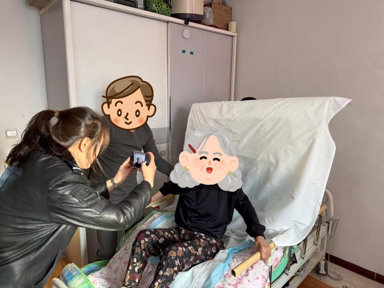 大興安嶺新林區(qū)公安局新林鎮(zhèn)派出所在日常工作中了解到馬大娘因病長期臥床,無法前往派出所辦理換證,給醫(yī)保報銷等日常生活帶來了實際困難。面對這一情況,戶籍民警立即響應:“群眾出不了門,我們就把窗口‘搬’到家!”他們帶上設備,專程來到馬大娘家。面對老人無法坐立、拍攝難度大的實際情況,民警細心布置背景,輕柔地為老人整理衣著,一邊溫言安撫,一邊反復調整拍攝角度、捕捉最佳瞬間。經過多次嘗試,終于成功采集到照片,并順利完成了信息核對與指紋錄入等流程。