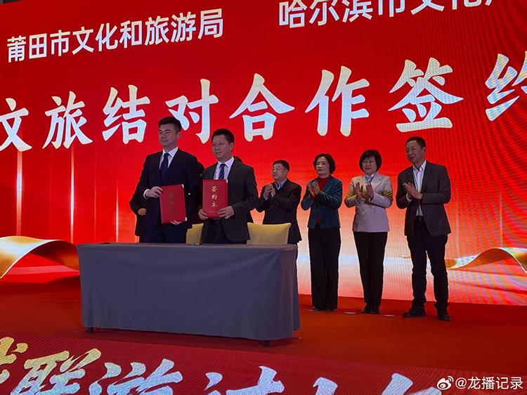 推介會(huì)上,莆田市文化和旅游局與哈爾濱市文化廣電和旅游局、莆田市秀嶼區(qū)文化體育和旅游局與哈爾濱市道外區(qū)文化體育和旅游局、莆田市南日島景區(qū)與哈爾濱市太陽(yáng)島風(fēng)景區(qū),分別簽訂文旅戰(zhàn)略合作框架協(xié)議,將充分發(fā)揮兩地文化資源稟賦和產(chǎn)業(yè)優(yōu)勢(shì),在文化交流、文旅融合、聯(lián)動(dòng)宣傳、市場(chǎng)推廣等核心領(lǐng)域,開(kāi)展全方位、深層次的深度協(xié)作,共同推動(dòng)兩地文化和旅游產(chǎn)業(yè)提質(zhì)增效,促進(jìn)南北區(qū)域文旅協(xié)同高質(zhì)量發(fā)展。