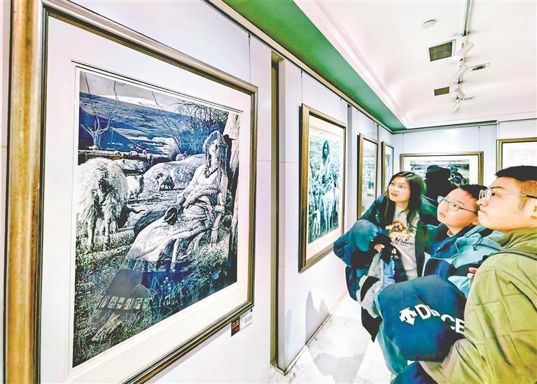 近日,位于哈爾濱市道外區(qū)的哈藥六版畫博物館內(nèi),游客們在展廳里觀賞油畫、版畫,在走廊和大廳里打卡拍照發(fā)朋友圈。