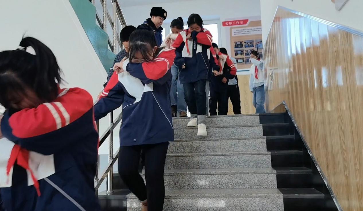學生們在消防宣傳員與班主任的指引下有序開展應急疏散演練(胡春磊 攝)